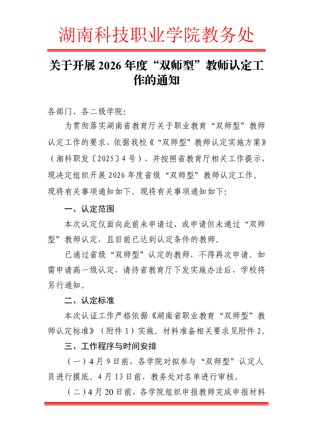关于做好2026年度“双师型”教师认定报名工作的通知